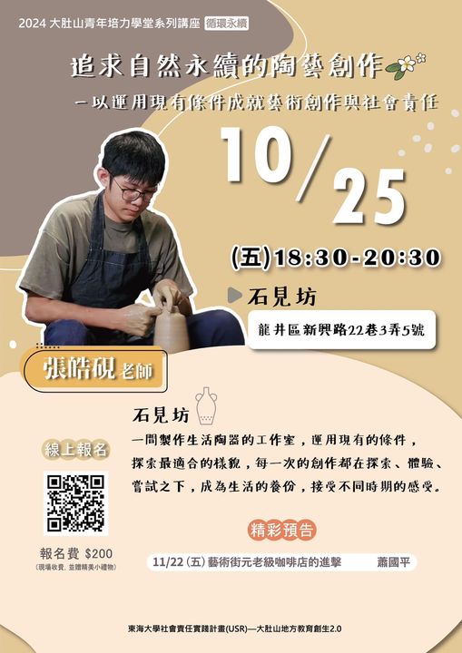 第二期USR計畫「大肚山地方教育創生」於109年正式啟動,透過已穩定運作的「在地教育工作者社群」,東海與四箴國中、龍峰國小及瑞峰國小,共同設計「以在地為基的螺旋式課程」。此螺旋式課程乃配合108新課綱的「素養教育」,發展出連結生活情境與課程目標的創新課程,為缺乏文化刺激的大肚山兒少,尋求更多未來發展的可能性。 本次舉辦的工作坊將深入討論與社區資源結合的螺旋式課程教案設計、研擬具體可行的作法,進行一場彼此激勵、共創未來的增能研習。